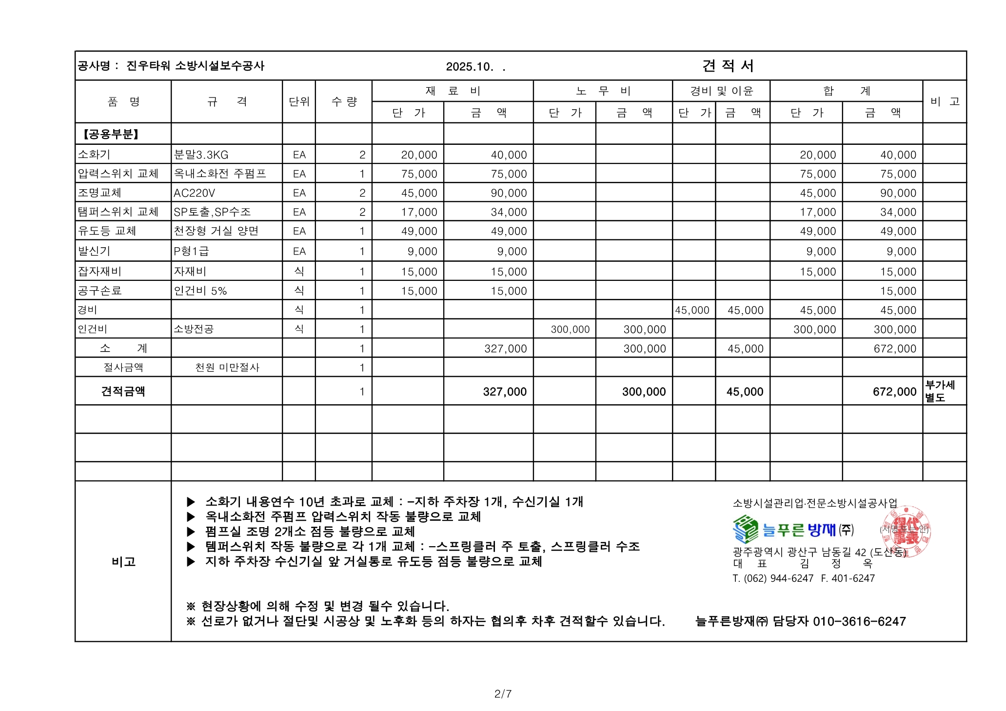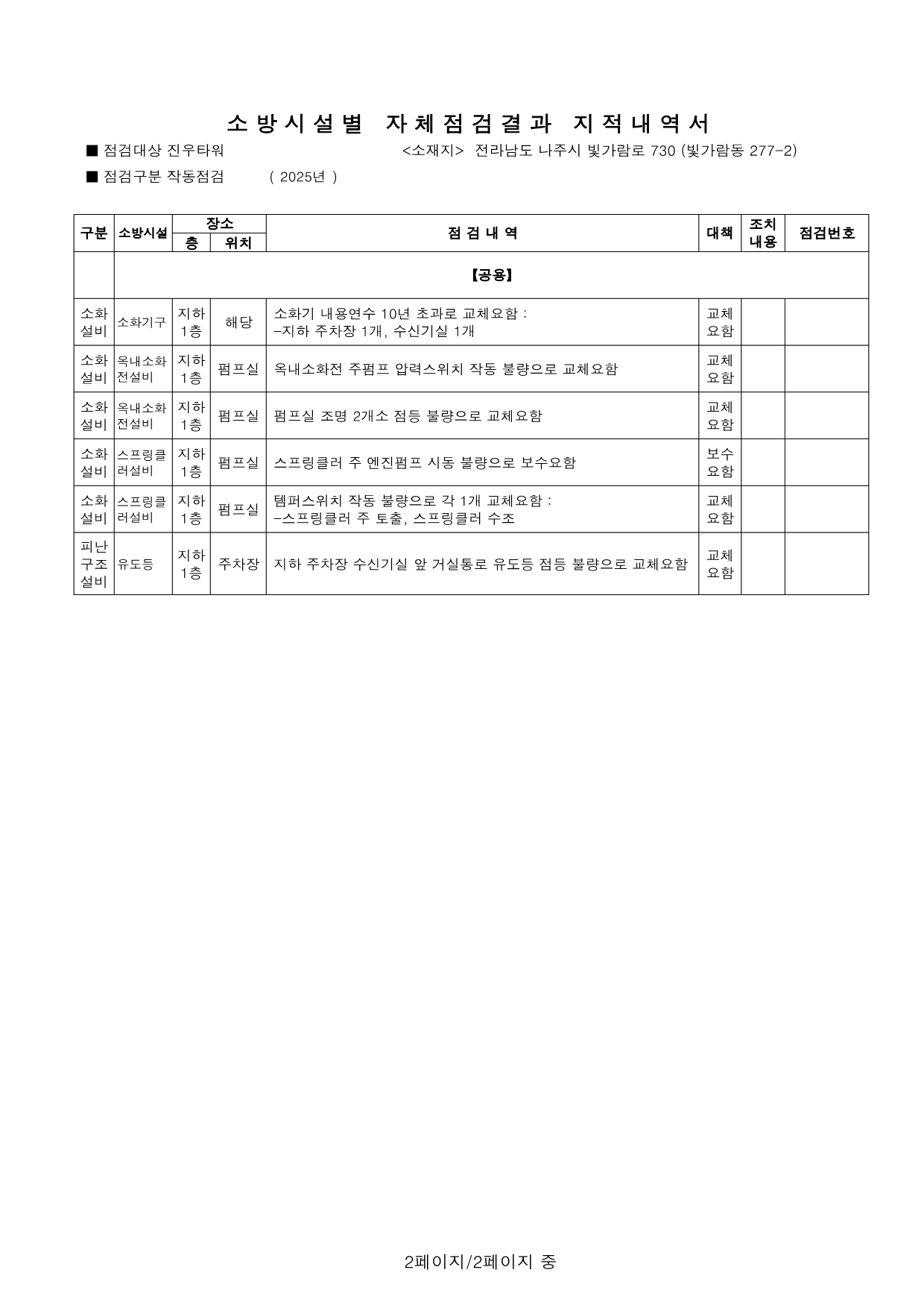 (진우빌딩) 소방시설 지적사항 보수공사 안내문