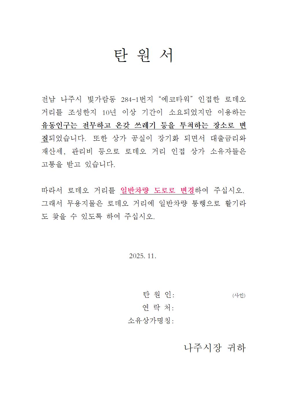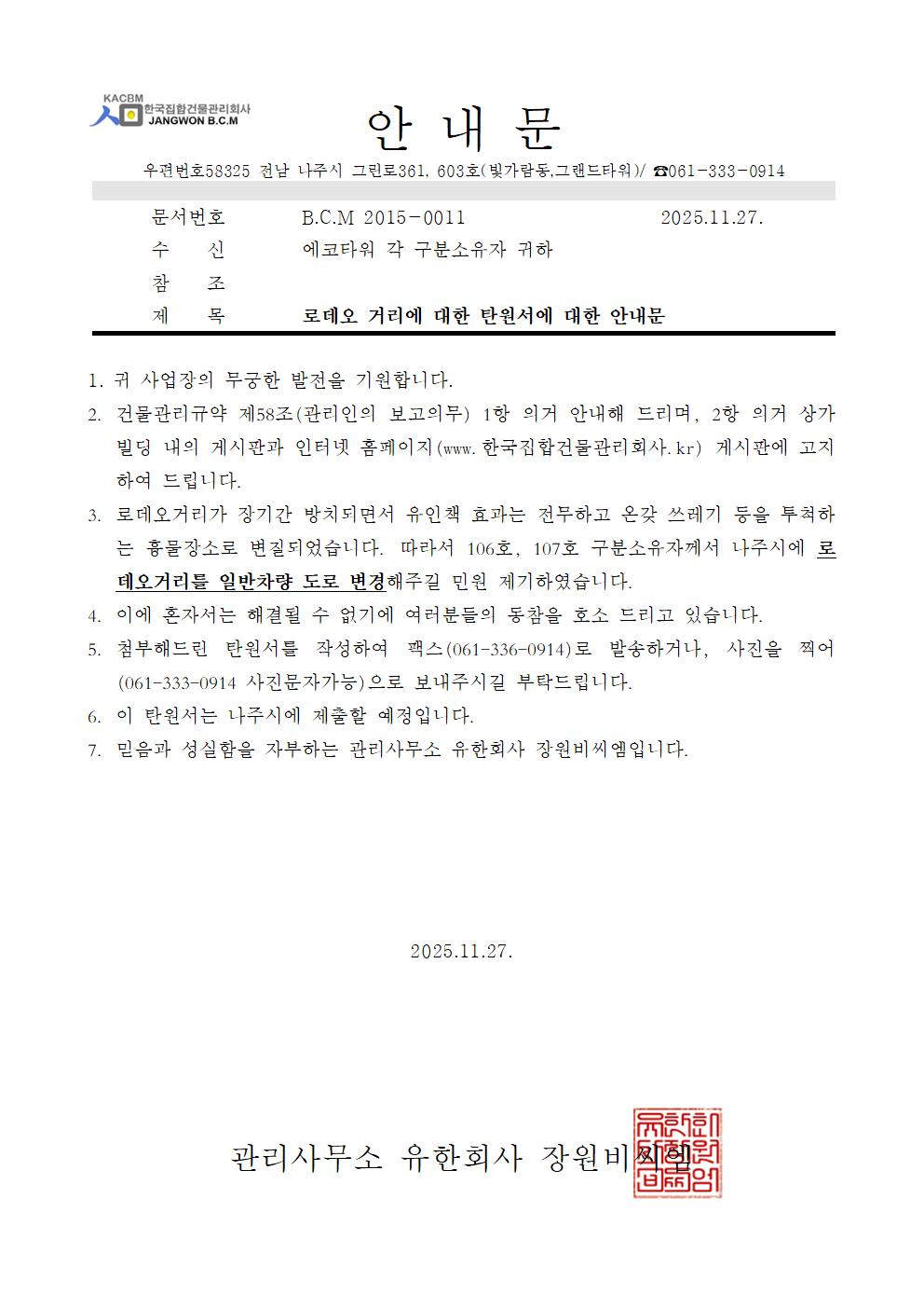(에코)로데오 거리에 대한 탄원서에 대한 안내문