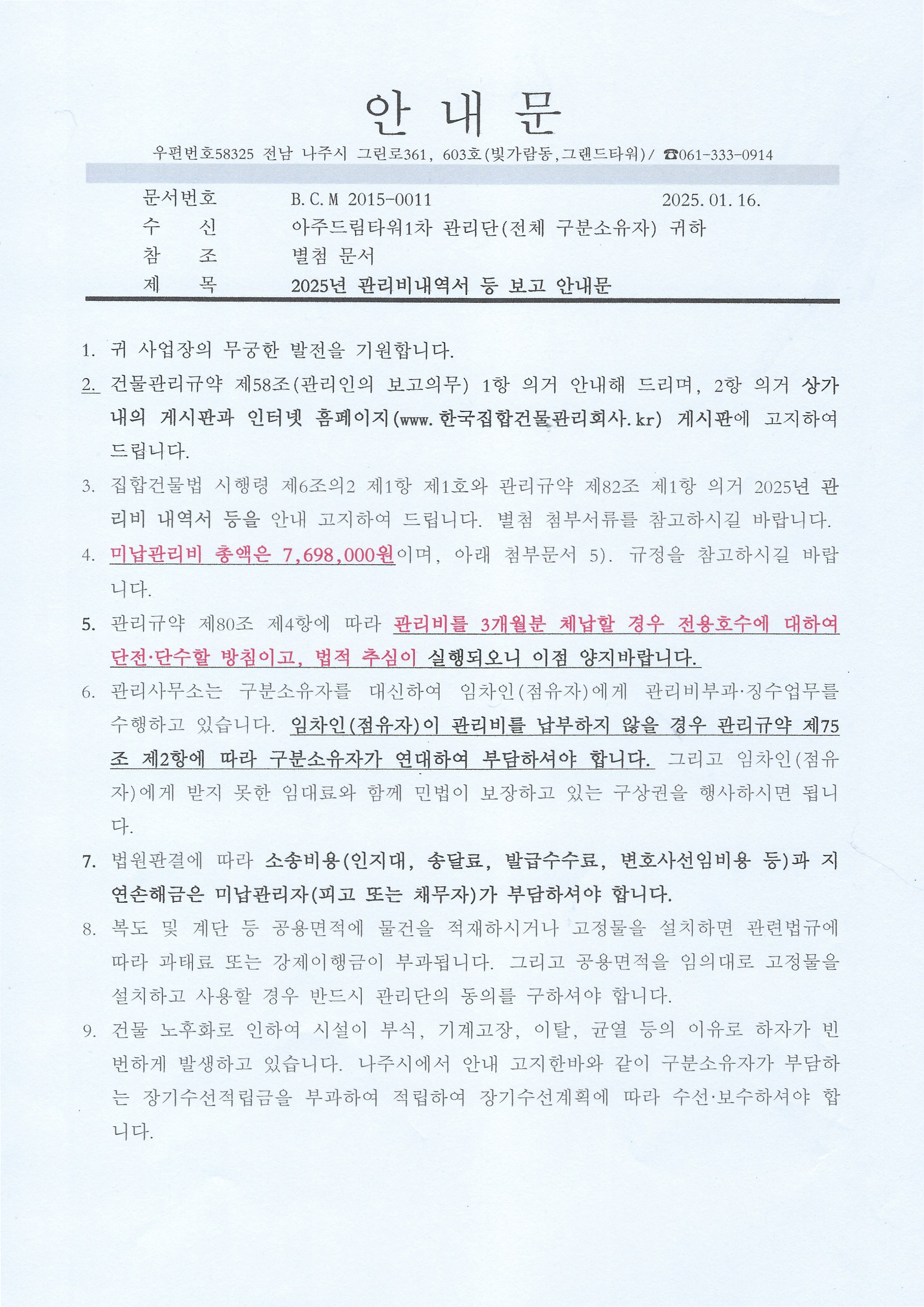 (아주1차)2025년 관리비내역서 등 보고 안내문