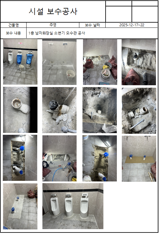 (주영타워)1층 남자화장실 소변기 오수관 공사 완료 안내