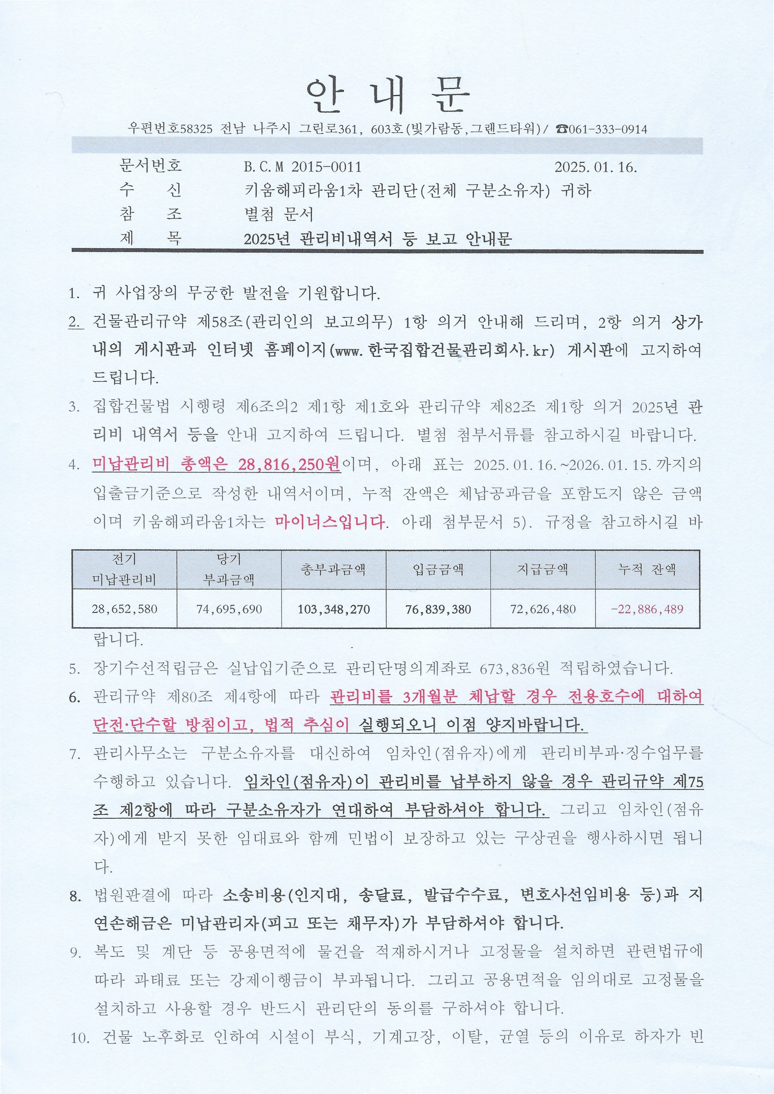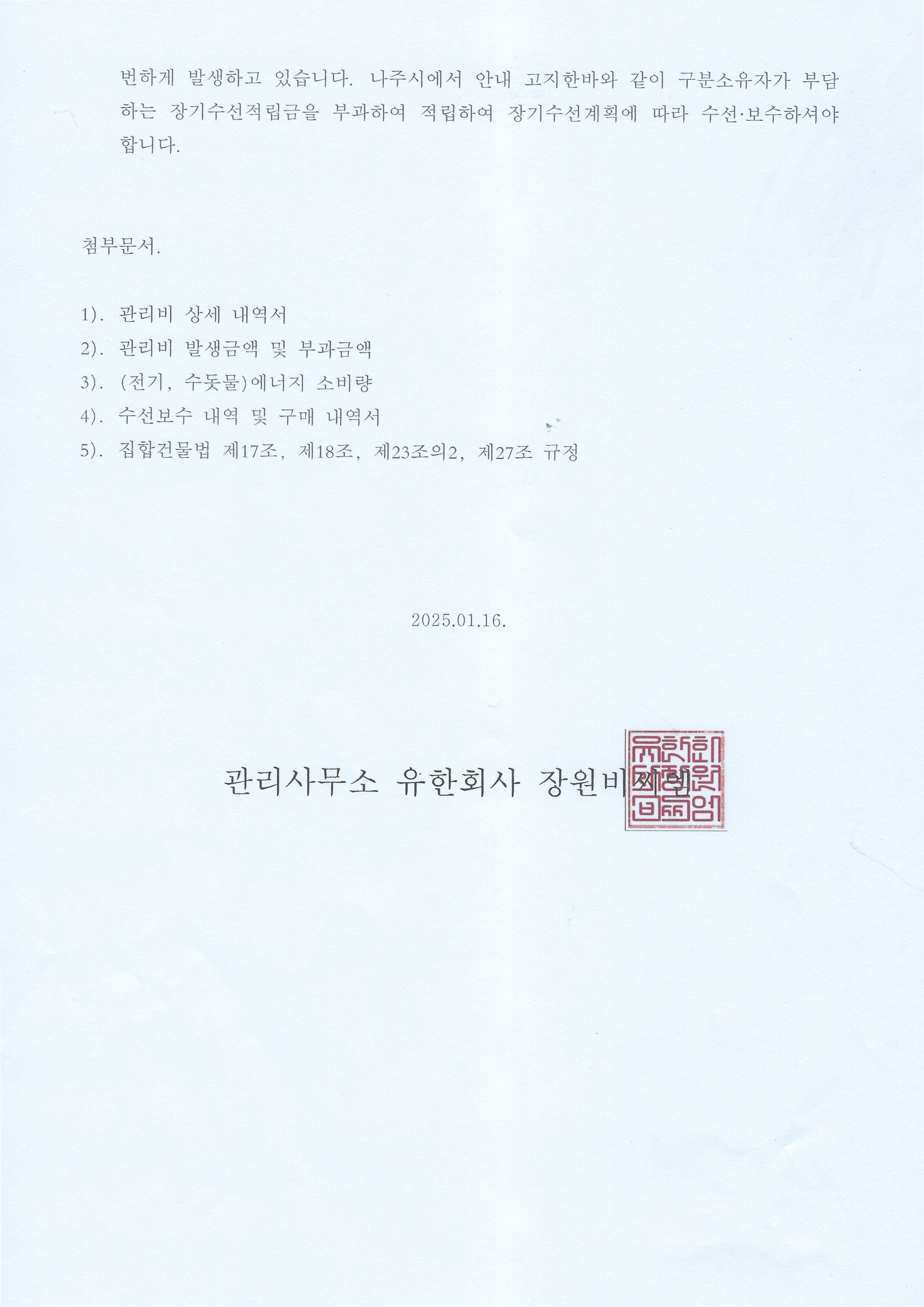(해피1차)2025년 관리비내역서 등 보고 안내문