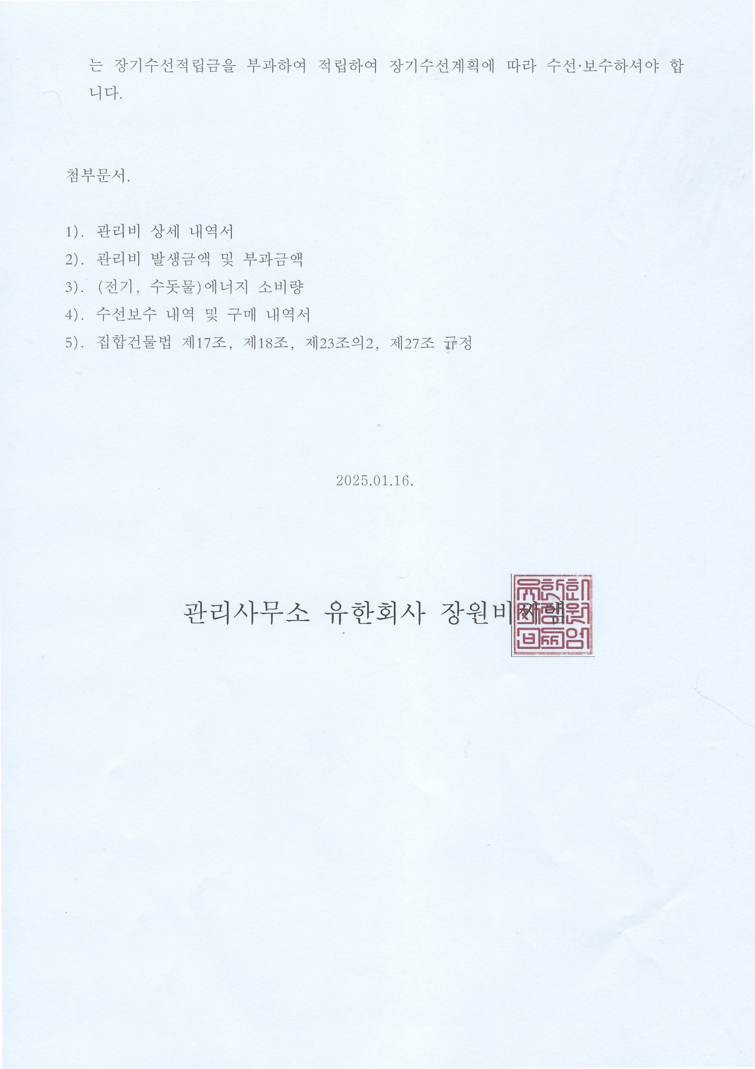 (해피2차)2025년 관리비내역서 등 보고 안내문