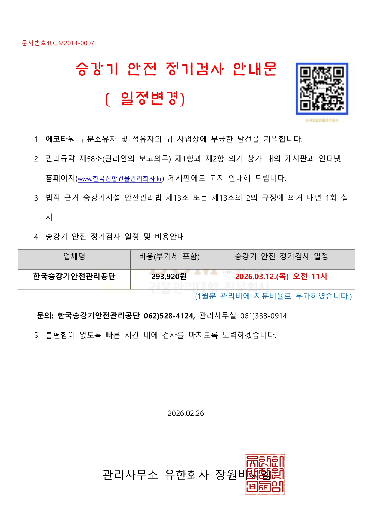 (에코타워)승강기 안전 정기검사 안내문-일정변경