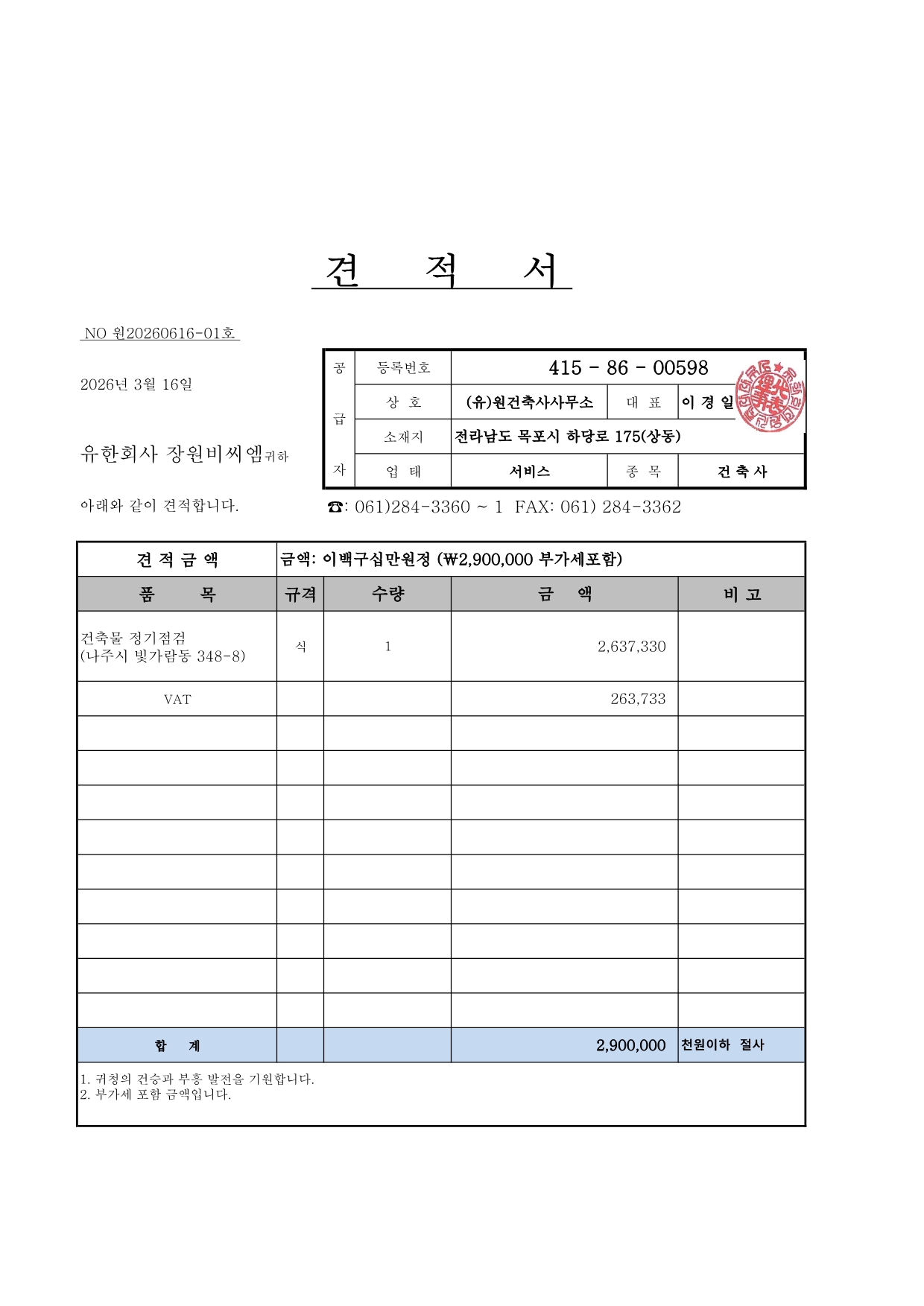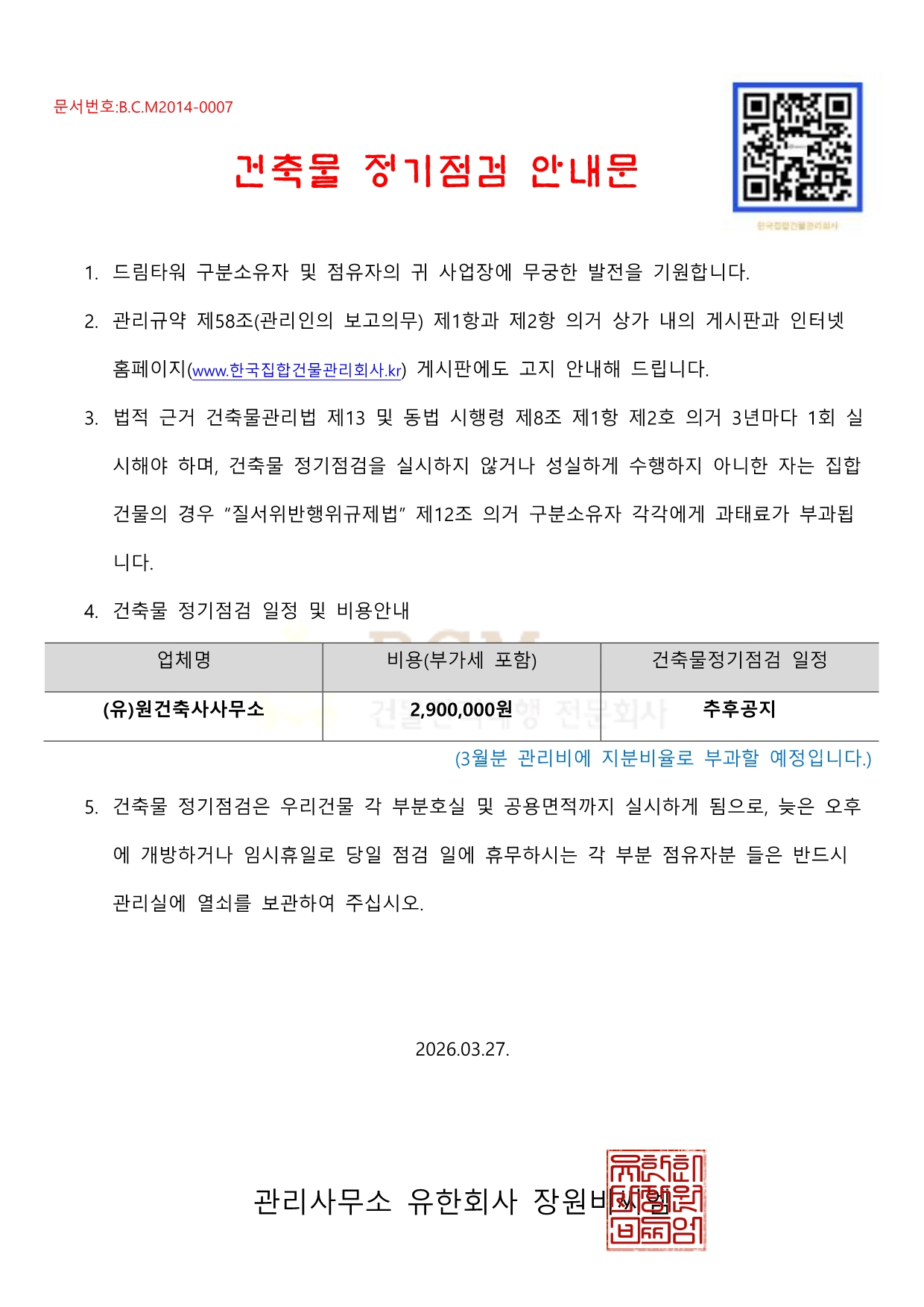 (드림타워)건축물 정기점검 안내문