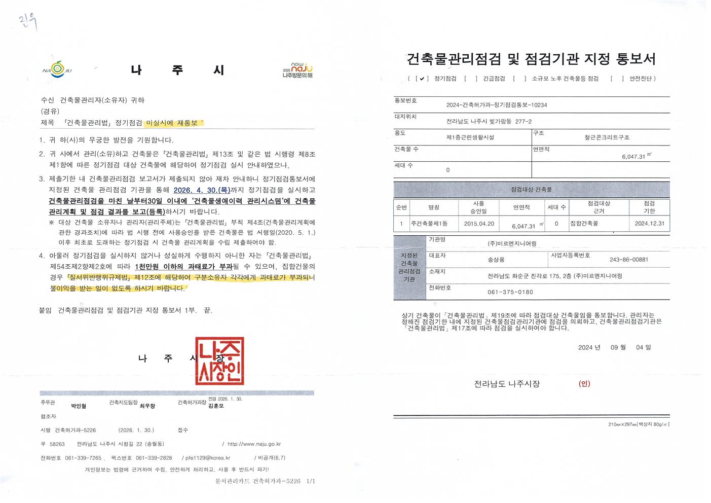 (진우타워)건축물 정기점검 안내문