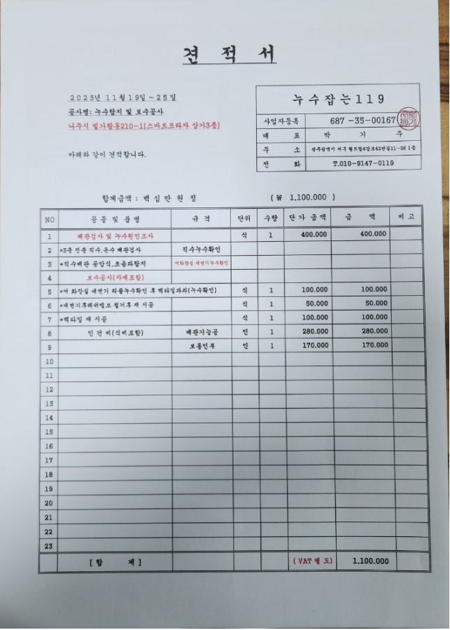 (스마트프라자)3층 화장실 누수탐지 및 공사