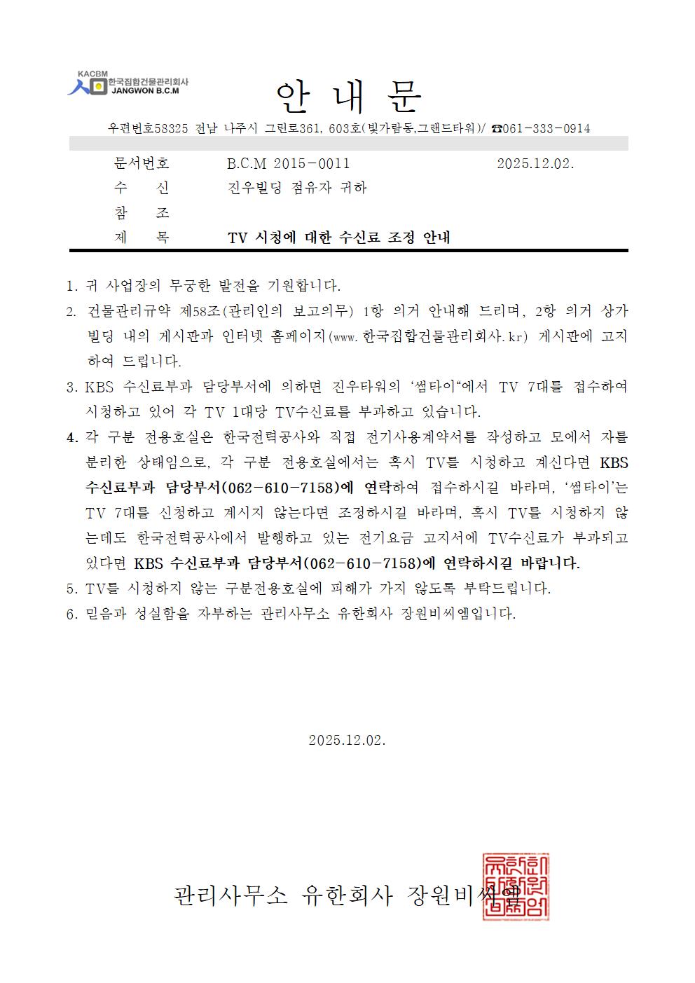 (진우)TV신청에 대한 수신료 조정 안내