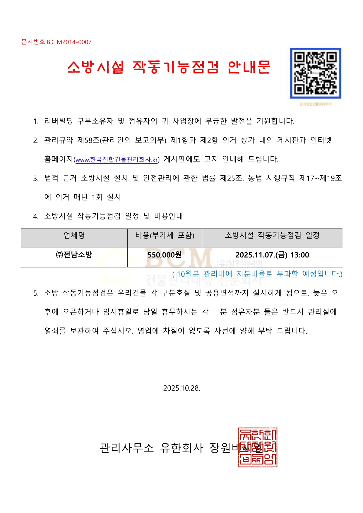 (리버빌딩) 소방시설 작동기능점검 안내문