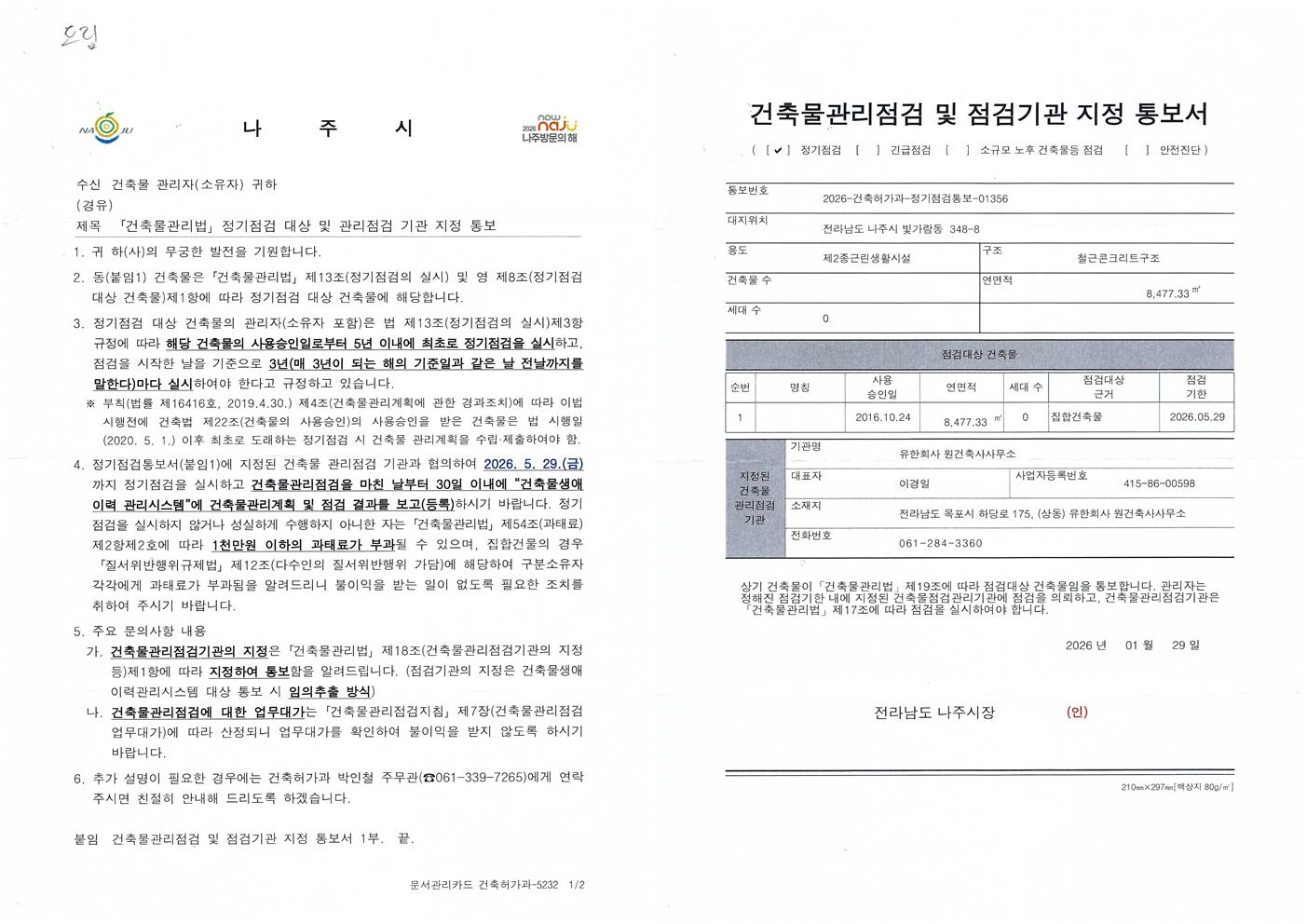 (드림타워)건축물 정기점검 안내문