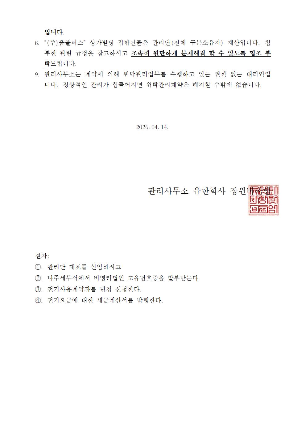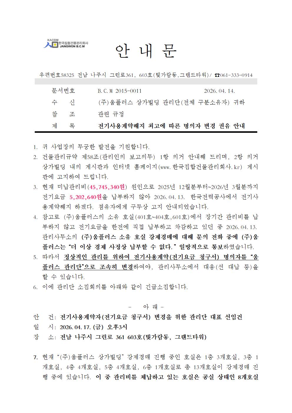 (성도)전기사용계약해지 최고에 따른 명의자 변경 권유 안내